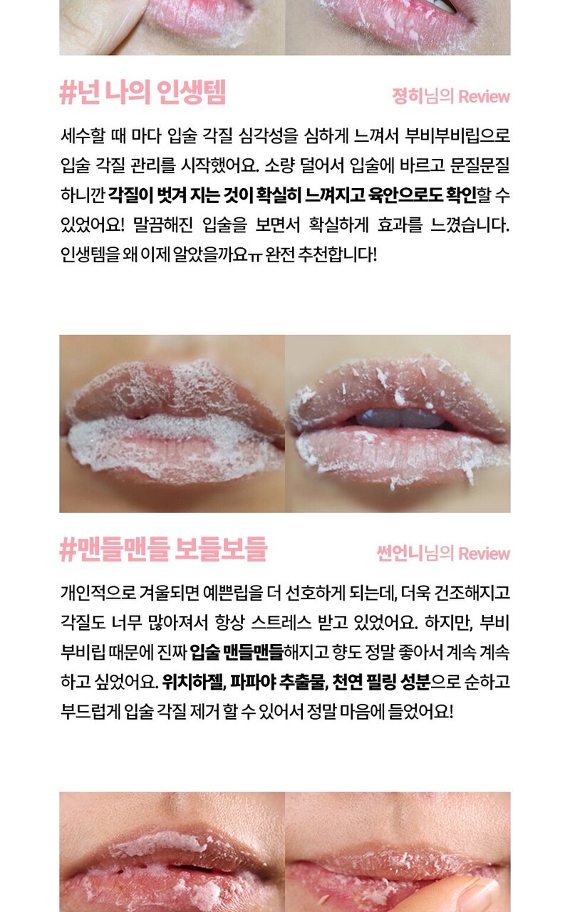 안녕하세요 여러분이 반하게 될 뷰티 블랙홀입니다. 오늘은 오랜만에 립밤 추천 포스팅을 하게 되었습니다. (립밤을 자신있게 추천하는 데는 다 이유가 있으니 립밤 유목민분들은 주의 깊게 포스팅을 읽어보시면 좋을 것 같아요!) 직장인인 저 역시 깔끔한 립 메이크업을 위해 립 메이크업을 게을리하지 않습니다. 그리고 내부와 외부 모두 깔끔한 모습을 보여줍니다. 그래서 적어도 하루는 립밤을 바르는 것 같아요. 관리하지 않으면 각질이 부풀어 오르고, 건조해지고, 심지어 흉터가 생기기도 합니다. 단 한번의 터치만으로도 매끄럽게 밀착되어 수분을 가득 채워주며, 립 퍼핑 효과까지 주어 피부를 탄탄하게 채워줍니다. 새로운 느낌의 신개념 립밤이라 소개해드려요. 각질에 신경을 썼을 때와 그렇지 않았을 때 내 입술의 상태를 즉각적으로 보여줍니다. 사진으로 보여드리겠습니다. 립밤을 바르기 전 각질을 제거해주세요