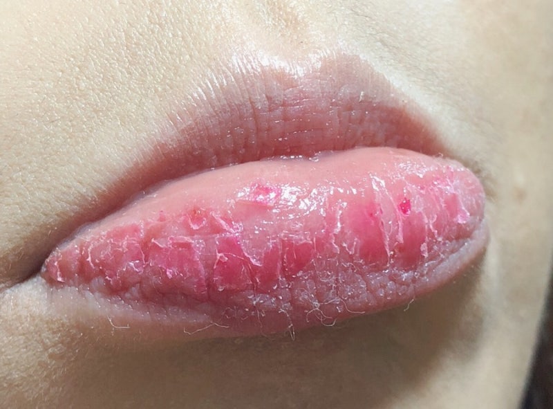세안도 꼼꼼히 하고 입술 각질도 다 제거했어요. 카메라로 사진을 찍어 자세히 보니 아직 떨어지지 않은 각질이 그대로 남아있는 것을 볼 수 있었습니다. 립밤을 바르고 약 1시간 후 각질이 제거됩니다.