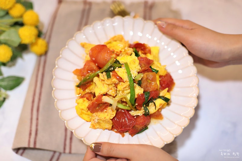 토마토를 따로 볶아서 먹어도 되지만, 계란과 함께 볶아 먹으면 부족한 단백질을 활용할 수도 있습니다. 재료를 각각 따로 튀겨서 반 이상 끓인 후 다시 끓이면 군더더기 없이 깔끔한 토마토-계란볶음을 만들 수 있습니다.