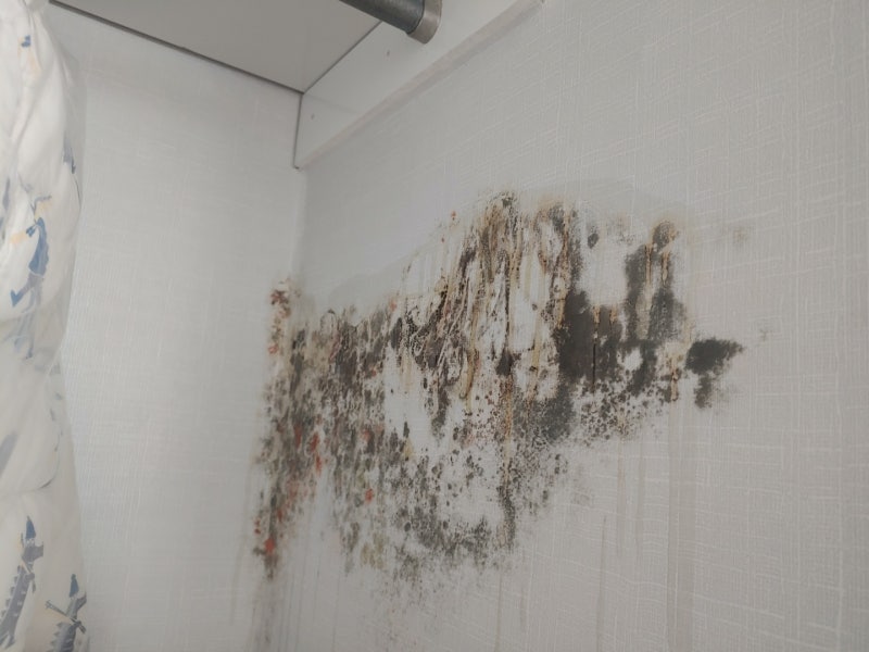 현장에 방문해서 살펴보니 이곳이 바로 옷장이 있던 자리라는 것을 알게 되었고, 옷장을 꺼내보니 상태가 매우 심각하다는 것을 느낄 수 있었습니다. 이 경우에는 서투르게 처리하지 말고, 주의를 기울여 전문적인 지식과 경험을 바탕으로 완벽하게 처리하시기 바랍니다. 그래야만 깨끗한 공간으로 거듭날 수 있습니다. 이런 환경에서는 방에 들어가면 퀴퀴한 냄새와 함께 곰팡이 포자가 방 안 여기저기로 날아다니게 됩니다. 장기간 실내에 거주하게 되면 기침, 천식 등 호흡기 질환이나 아토피, 피부 가려움증 등의 피부질환이 발생할 수 있습니다. 노출되기 쉽습니다. 이런 경우에는 지체하지 않고 빨리 결정하고 조치를 취하는 것이 가족의 건강을 지키는 지름길이며, 더 큰 피해를 줄일 수 있습니다.