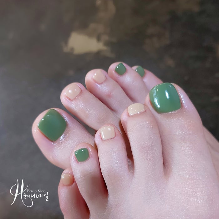 부평지하상가 네일샵, 차네일 내돈내산 여름패디를 한 가지 컬러로 물들였습니다.