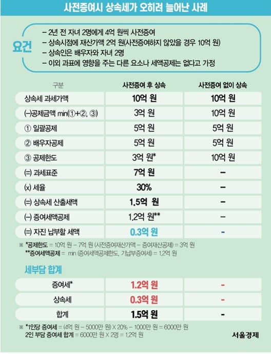 내용: 자녀가 기존 아파트를 소유하게 되면 보유 주택 수가 늘어나고 세금도 부담되기 때문에 사망 후 법정 지분에 따라 아파트를 상속받는 것이 좋습니다. How 현재 가치가 오를 수 있는 부동산을 기부한 만큼, 현금 자산을 모두 즉시 증여하기보다는 그 중 일부를 자녀가 앞으로 납부해야 할 상속세 재원으로 활용하는 것이 좋습니다. 상속세가 부담되는 것은 당연합니다. #상속세 #부동산증여 #재산공제 증여 #선불증여 #절세전략 #선불증여 세대 생략 #재산 상속