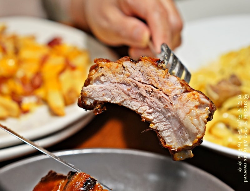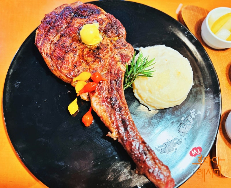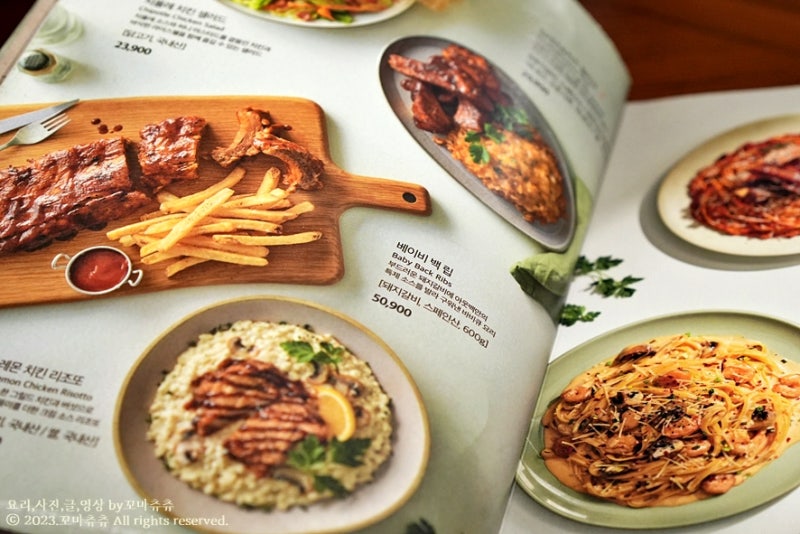 한참을 기다리며 자리에 앉고 나면 메뉴를 주문할 차례입니다. 아웃백스테이크하우스의 주메뉴는 토마호크스테이크인데 점심때가 가장 저렴하게 먹을 수 있는 것 같아요. 아웃백의 꽃은 점심이고, 점심은 사랑입니다. ㅎㅎ 어떤 메뉴를 먹느냐에 따라 다르지만 사실 저희도 아웃백에서 스테이크를 몇 번 먹어봤는데 아이들이 이상하게 스테이크보다 #베이비등갈비 를 더 좋아하더라구요. 그리고 투움바 파스타와 치킨 샐러드는 국물의 법칙이라 보통 이 세 가지 메뉴를 먹지만 여기서 중요한 점은 투움바 파스타, 치킨 샐러드, 베이비백립 세 가지 메뉴를 런치 세트 메뉴 2개로 모두 먹을 수 있다는 점이에요 !