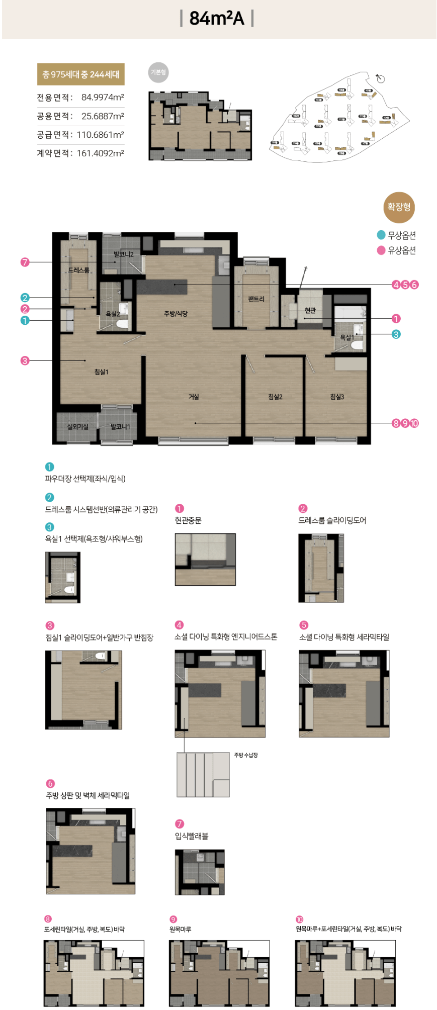관설동 일대 전체가 지하 2층~지상 18층 규모의 업무지로, 중형 84, 115, 136㎡ 총 975세대입니다. 이 중 84㎡가 전체 유닛의 61.5%를 차지해 투자 활용도가 매우 높다. 대규모 단지임에도 불구하고 건폐율과 용적률이 각각 21%, 227%에 불과해 개방감이 높은 것으로 보인다.