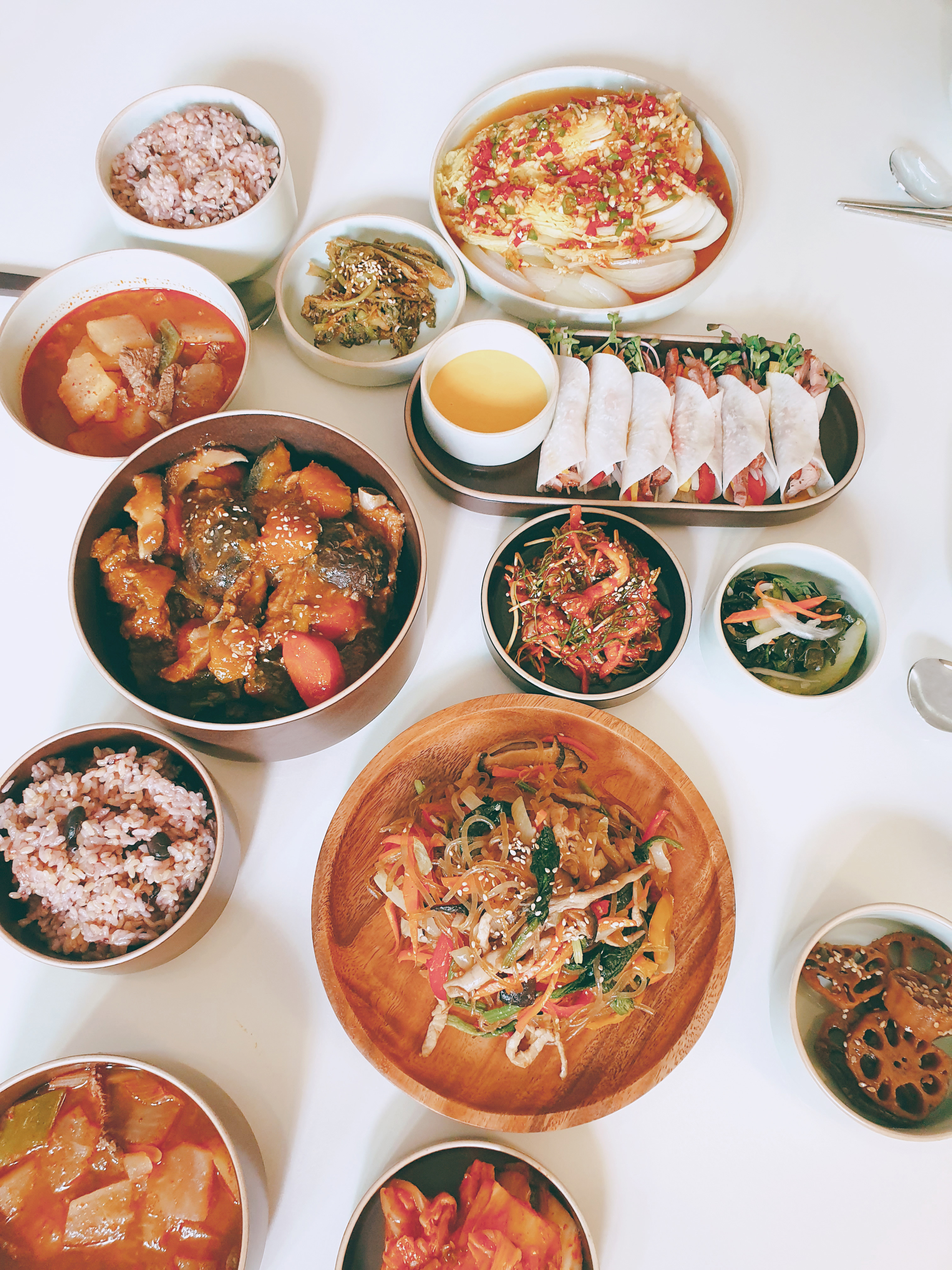 세팅 완료~ 든든한 식사네요. 다행히 부모님 두분 모두 맛있게 드셨습니다. 어른 8명이서 식사했는데 다들 큰 테이블을 사는 게 좋겠다고 하더라고요 ㅎㅎ